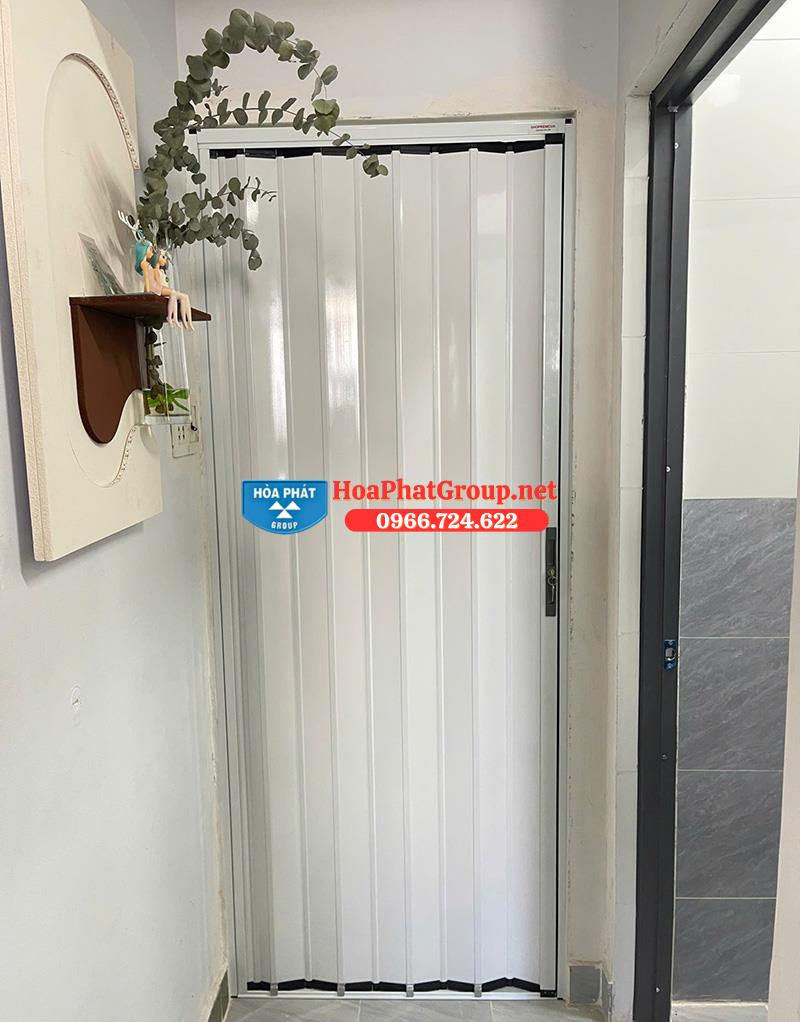 Cửa xếp lá nhôm trắng chịu nước, gấp gọn tiết kiệm diện tích cho cửa đi nhà vệ sinh có diện tích nhỏ hẹp