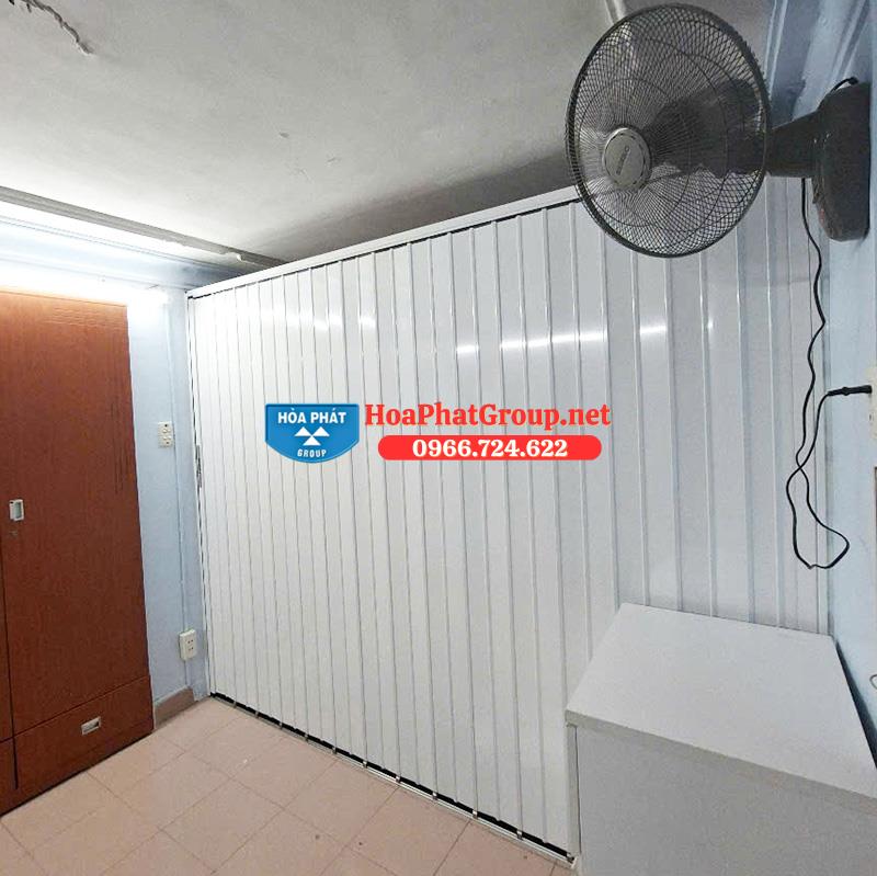 Ảnh Vách ngăn cửa xếp lá nhôm trắng cao cấp được sử dụng ngăn thêm phòng