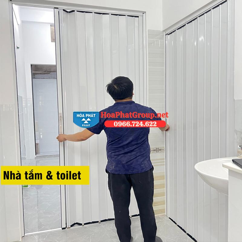 Lắp đặt cửa xếp lá nhôm Hòa Phát cho nhà tắm, nhà vệ sinh gọn đẹp, sạch sẽ
