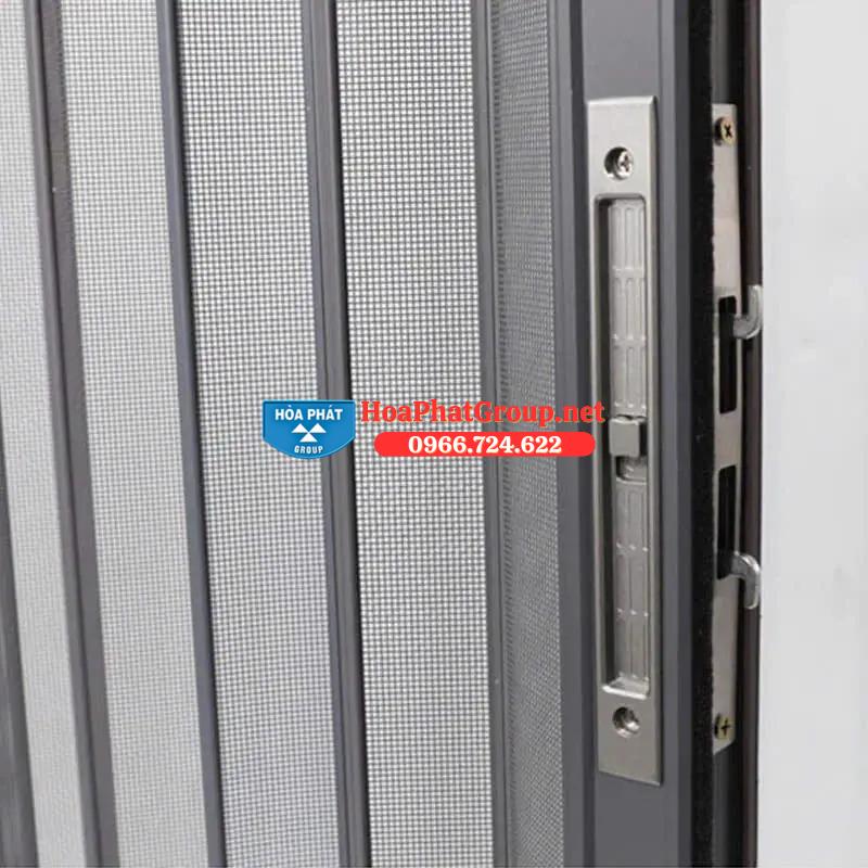 Cửa xếp nhôm sử dụng khóa bật trong, khóa chìa ngoài chắc chắn