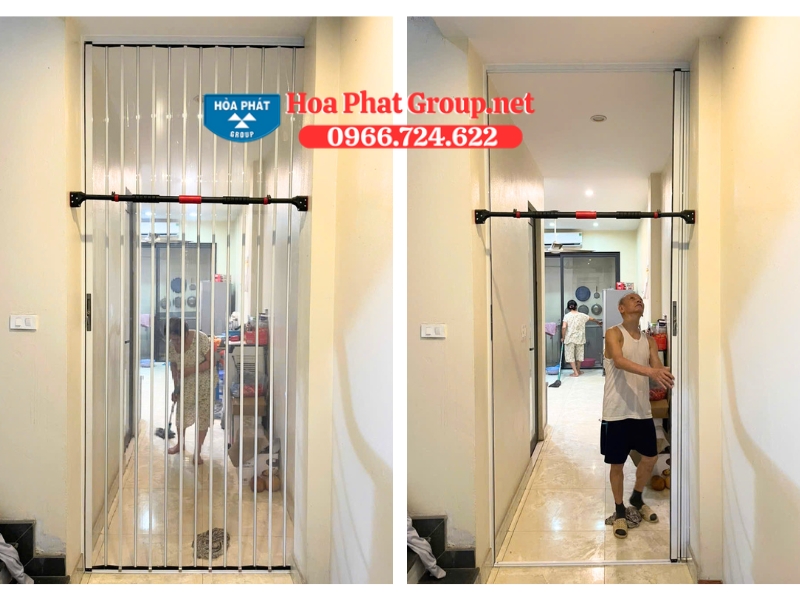 Lắp đặt cửa xếp lá nhôm ghi xám cho lối đi lại