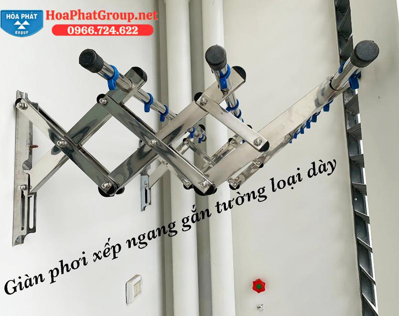 Giàn Phơi Thông Minh Gắn Tường Hòa Phát Inox 304 là dòng sản phẩm giàn phơi xếp ngang cao cấp, sử dụng chất liệu inox 304 có độ bền cao, tải trọng lớn, không bao giờ bị han gỉ khi sử dụng ngoài trời.