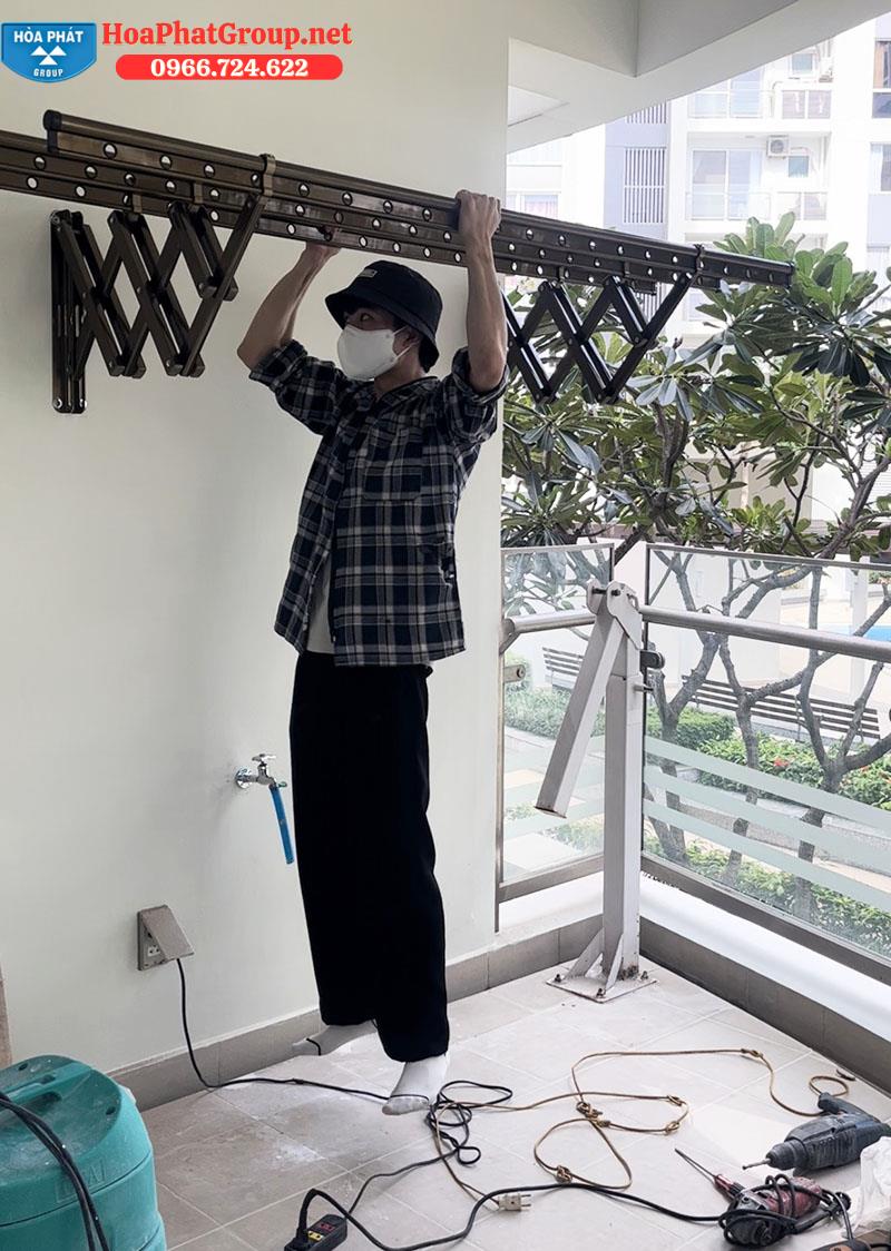 Lắp giàn phơi gắn tường xếp ngang Hòa Phát K02 siêu bền tại nhà Biệt Thự Liền Kề