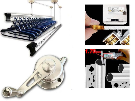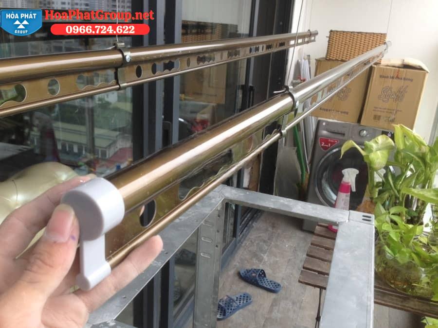 Thanh phơi: Được làm từ hợp kim nhôm có dập các lỗ định vị. Thanh dài 2.2m bên ngoài sơn phủ bóng tĩnh điện. Thanh cấu trúc hình trụ để tăng thêm độ cứng. Phụ kiện đi kèm của thanh còn có treo thanh và bịt đầu thanh